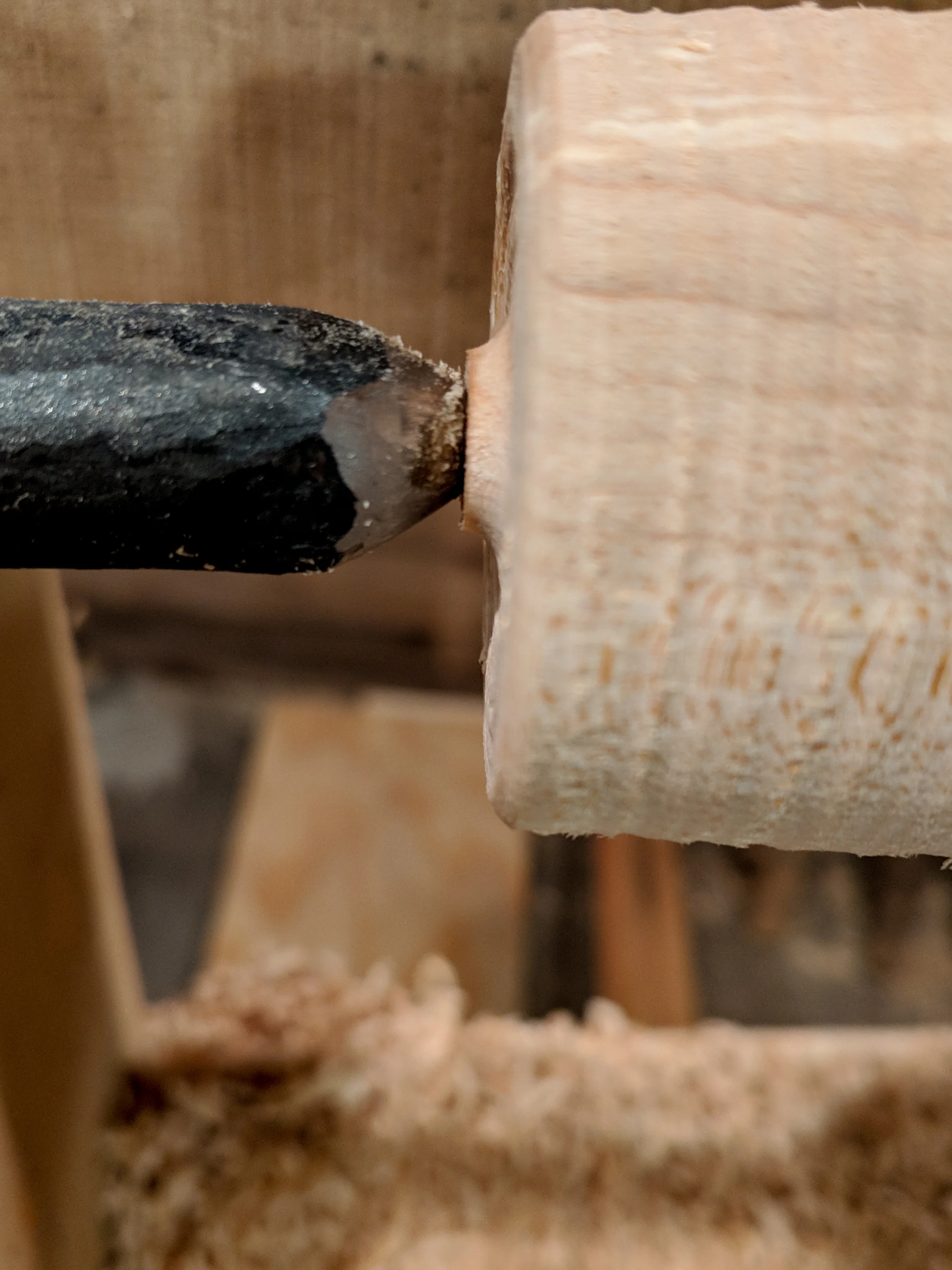 So there I was, basking in the glow of my newfound awesome turning skills, working on a fresh mandrel and Jarrod comes into the shop and douses that glow with an icy bucket of reality. He watched how I was turning, stopping me to correct the angle I was holding the tool. He hopped on the lathe to demonstrate a technique I was clearly struggling with. He then looked over my shiny new mandrels (nubbins detached) and pointed out all their defects. All of them. The list was long.